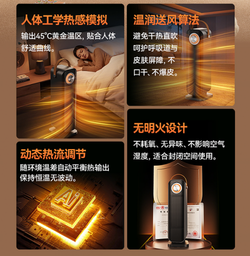 此外,整机通过国家3C、EMC、CE、ROHS认证,关键元器件采用UL等级阻燃材料,确保即使整夜运行也能安全无忧。值得一提的是,西圣WarmX暖风机还配备了轻音运行设计,在满足高效取暖的同时,保持低噪音运行,即使整夜开启也不会打扰睡眠。