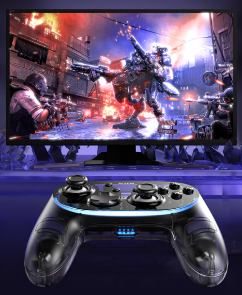 在设计语言上,西圣GC1直接把千元旗舰常用的工业工艺下放到百元价位,整机采用半透明幻雾晶透机身,通过雾化层与半透光学结构叠加,使内部主控、电路与机械结构若隐若现,既具未来硬核质感,又具备抗指纹与耐磨性能,配合环绕式RGB光效,光影在机身内部折射、流动,呈现浓厚的赛博科技氛围,这种视觉级别的质感,在百元手柄中极为罕见。