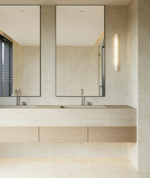 美学表达上,新品延续了品牌“建筑陶瓷艺术化”的探索。巴比伦砂岩系列复刻美索不达米亚岩层肌理,罗马金洞系列演绎洞石的典雅韵味,月光石系列萃取斯里兰卡名贵石材的静谧质感,三大系列适配从现代简约到新中式的多元家居风格。600×1200mm的统一规格,更降低了铺装损耗。