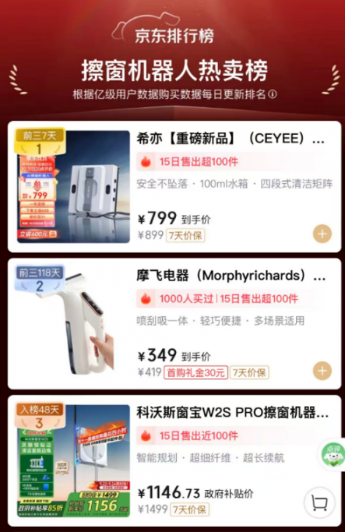 连续占据家居清洁品类销量榜首多日,希亦擦窗机器人竟与国际顶级品牌的高端机型并列热销榜单。值得称道的是,希亦虽掌握核心专利技术,却始终秉持科技普惠理念,将产品定价维持在合理区间。通过自主研发的清洁系统与智能路径规划算法,让每个家庭都能享受安全高效的高空清洁体验。