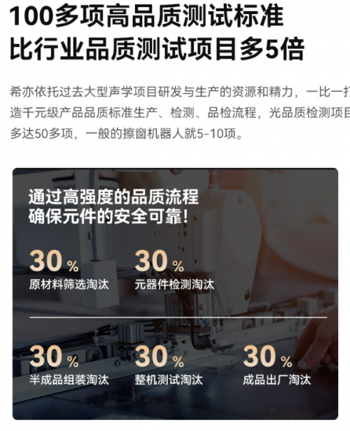 而且希亦W1擦窗机器人严格遵循军工级制造标准,在清洁效率、运行稳定与产品耐用性上重新定义了行业高度。为实现真正专业级的清洁表现,产品在核心部件选材、结构切割、组装精度与运动轨迹调校等关键环节,历经80余道严苛工序打磨,每一处细节都经得起推敲,每一个元件都精挑细选。致力于打造更高标准的专业级家用擦窗机器人,只为用户带来持久可靠、高效安全的全新清洁体验。