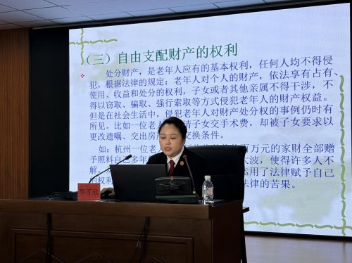 在街道会议室,针对“法律宣传和防诈维权”法治服务亮点纷呈。工作人员相继发放相关宣传手册,结合案例生动地讲解了相关法律知识,深入剖析赡养纠纷、财产继承等权益要点;通过反诈宣传、展示防诈漫画,揭秘“养老投资” 等诈骗套路,帮老人筑牢防诈意识。