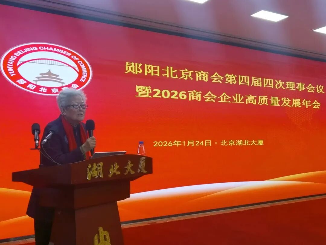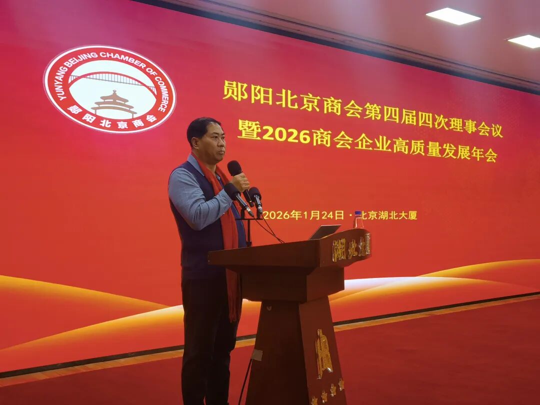 1月24日,“郧阳北京商会第四届四次理事会议暨2026商会企业高质量发展年会”在北京湖北大厦隆重举行,与会嘉宾欢聚一堂,共话乡情商情友情,共商高质量新发展。郧阳区南水北调对口协作驻京联络处主任曾甄代表郧阳区委区政府向活动致辞。郧阳北京商会名誉会长、原中外运集团董事长罗开富,武警四川总队原司令员曹善贵,中国贸促会原副会长董松根,中华全国供销合作总社监事会原副主任潘种树,著名历史学者、国学学者任德山,原中国通用咨询投资有限公司董事长刘德冰,中国农工党党员,中国摄影家协会会员姚思成,商会顾问、著名外交官、原劳动部国际合作司司长张幼云,原北京空军大校张清林,原总参二部大校王洪龙,国家邮政局原巡视员王永利,中央统战部光彩事业中心原副主任魏登田,北京奥运城市发展基金会秘书长魏登范,全国工商联研究室原巡视员、《中国民商》杂志社编委会主任黄文夫等在京工作的郧阳籍领导,曾在郧阳区挂职的北京市东城区有关领导,郧阳北京商会会长陈初明,以及各位副会长代表、理事代表、会员代表、各个委员会代表,赞助企业代表等九十余位嘉宾共同出席活动。