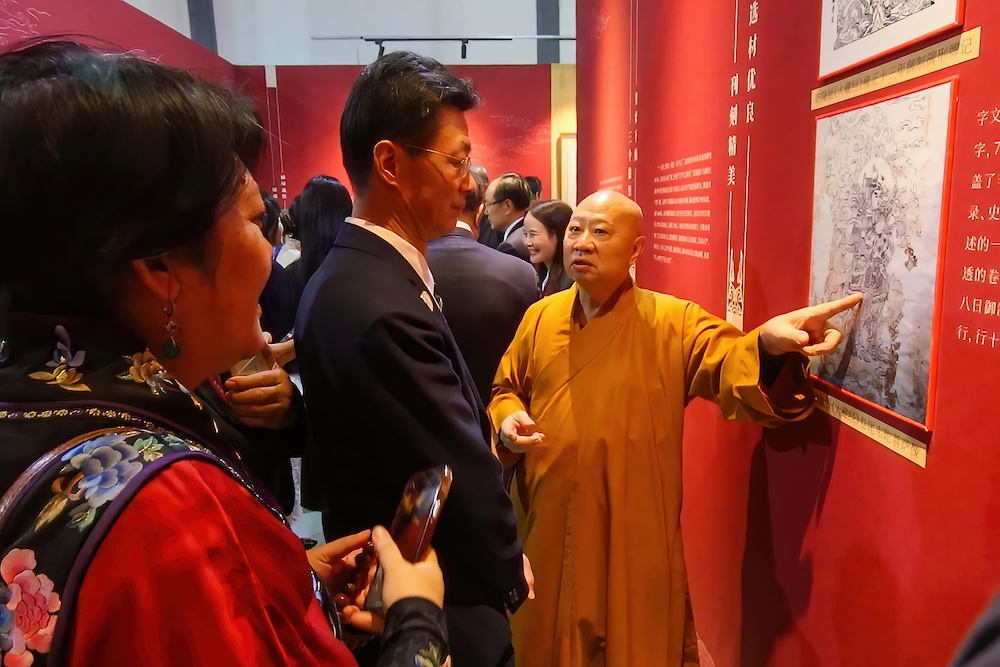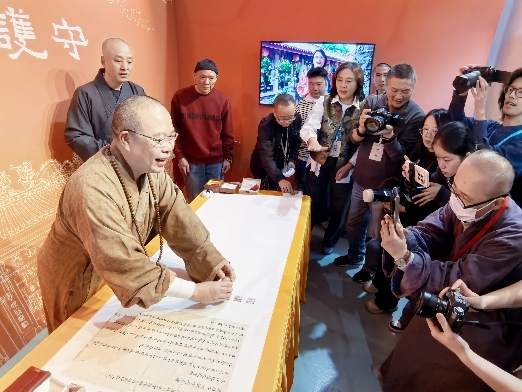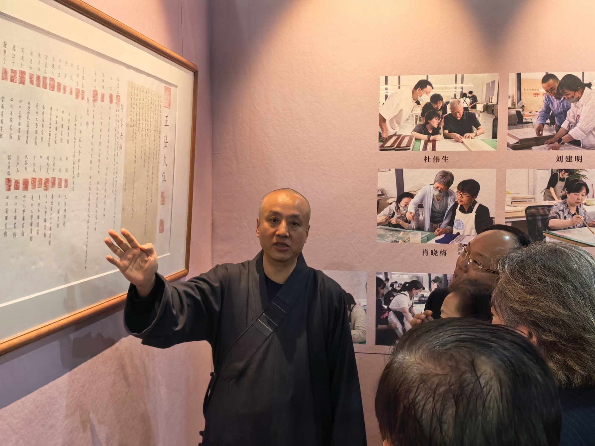 展览现场结合修复现场图片、纪实纪录片,从多侧面、全方位呈现了修复历程。展区由广东佛学院岭东学院的学生现场深度讲解,还有“我是乾隆大藏经守护人”电子纪念证书等互动项目,使古籍保护以更开放、更生动的方式走入公众视野。