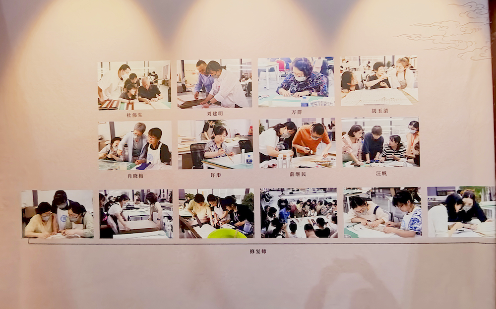 除此之外,还有一组特殊的展品,这个发黄的纸张是民国时期的修复《大藏经》褙纸,修复师整揭后重新托裱,写上修复缘起,再由所有修复师签名盖上印章。在国家图书馆古籍馆藏中,只有宋朝一本古籍上留有修复师名字,开元寺《大藏经》修复的特别记忆纸,是对中国文化古籍传承有序的记录,也是对古籍修复师的尊重。