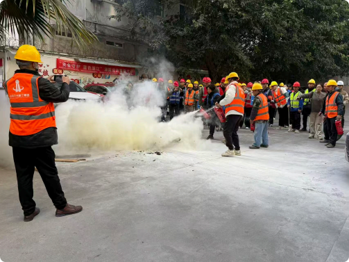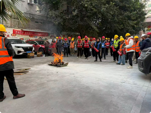 培训伊始,消防教官重点讲解火灾自救"黄金法则":"判别方向要观烟,湿毛巾捂口鼻,弯腰低姿贴墙走"。针对灭火器、灭火毯和防毒面罩三类核心器材,采用"分解动作教学法"详细演⽰取用姿势与操作步骤。在灭火毯教学环节,教官特别强调:"覆盖火源时要保持1.5米安全距离,双手持毯角下垂覆盖,待完全灭火后再撤离。"