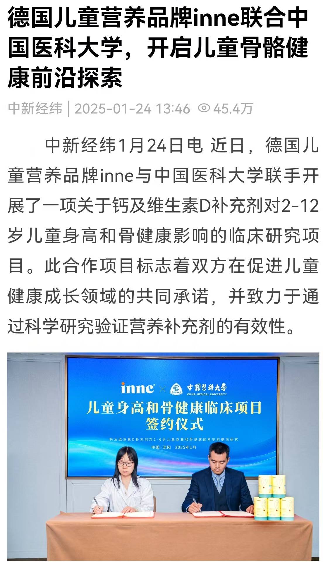 除中国医科大学附属第四医院外,inne还与上海交通大学附属新华医院、南京同仁医院等权威医院开展临床研究。inne营养健康研究院执行院长周正圆此前在央视采访中表示,希望通过严谨科学的临床实证,打破行业“纸上谈兵”的困境,推动儿童营养从“盲目补充”转向“精准适配”,为消费者提供可验证、可信赖的科学依据。
